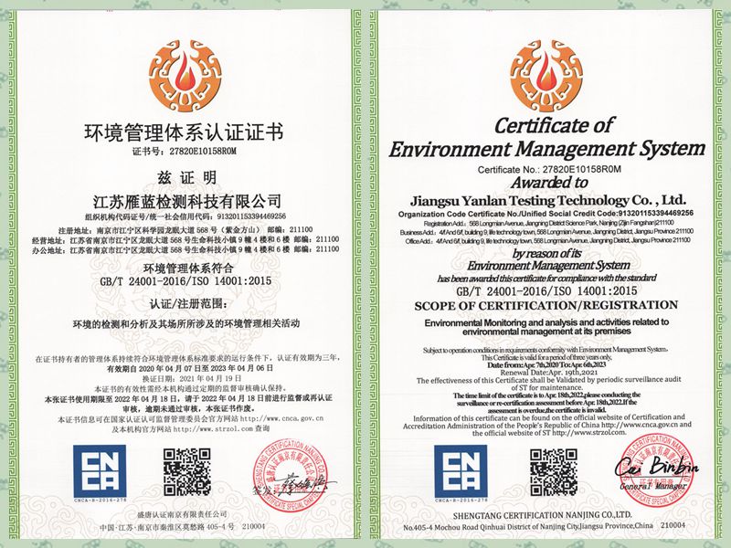 ? 江蘇雁藍(lán)檢測科技有限公司 2021 All Rights Reserved.